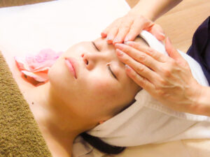 次にハンドによるフェイシャルマッサージで、お肌をやわらかくし、光の効果を最大限に引き出す準備をします。